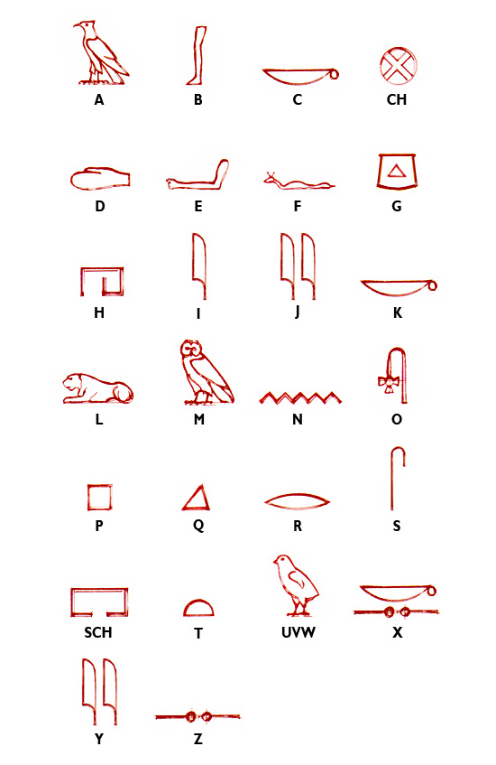 c) Lesezeichen mit Hieroglyphen (z.B. eigener Name in Hieroglyphen-Schrift) verzieren (Lesezeichen nach: www.kidsweb.de) (Datei im Anhang)
