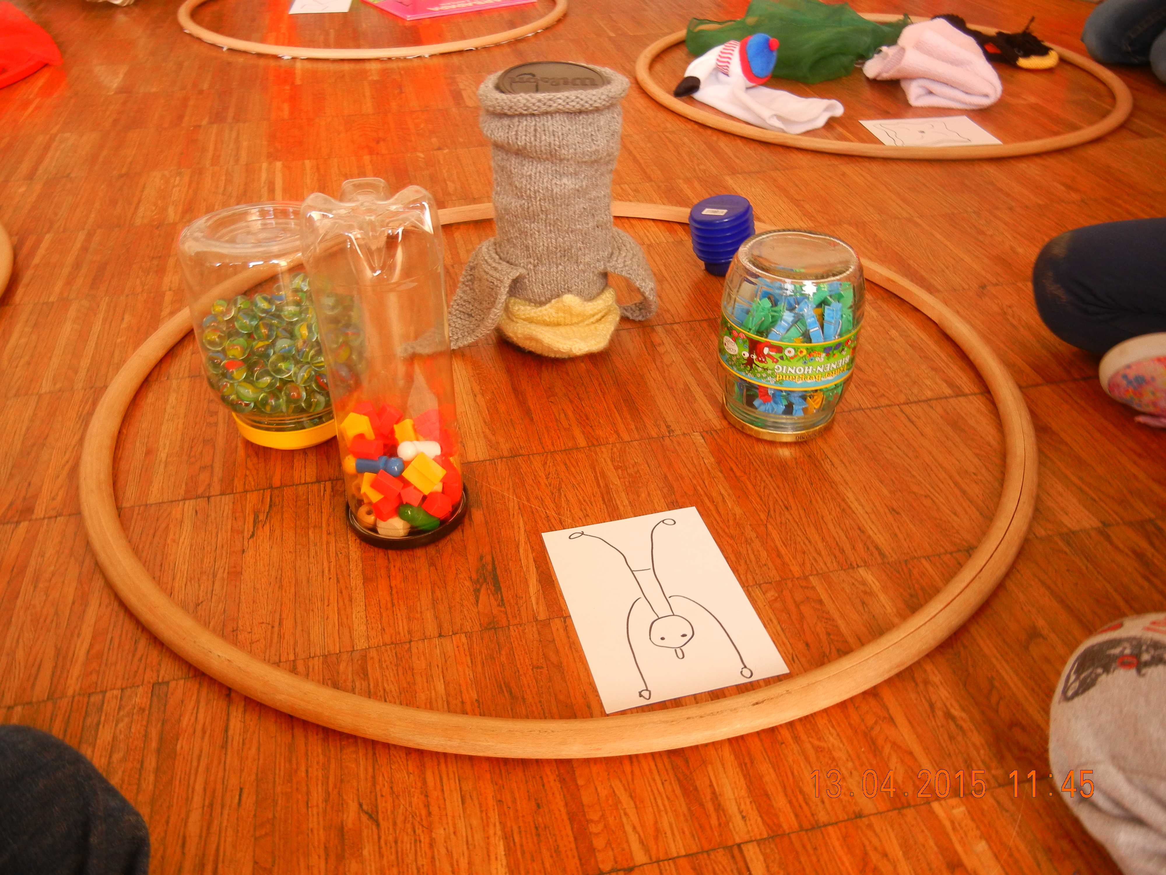- Legematerialien wie zum Beispiel Bauklötze, Tücher, Schulsachen(Stifte, Federpennal, Hefte, u.s.w.), Murmeln, Dosen, Fingerpuppen und mehr