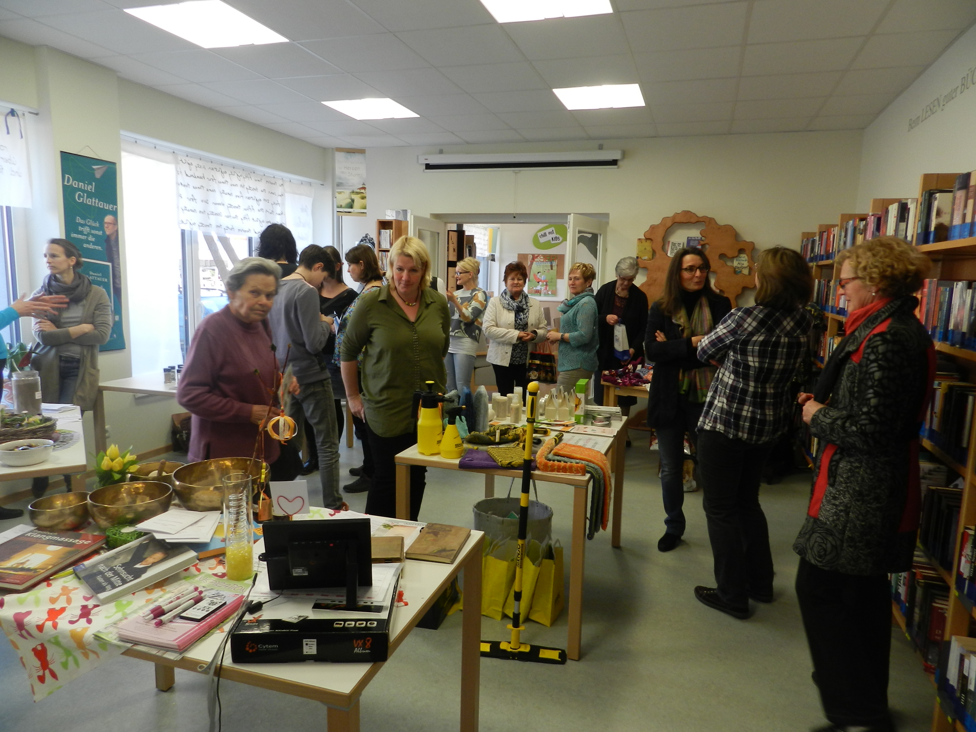 So habe ich folgende Idee: vor der Lesung sollen alle Frauen, die in unserer Gemeinde Produkte, Dienstleistungen, Visionen, Ideen, ... anbieten die Möglichkeit und damit die Plattform erhalten, in der Öffentlichen Bücherei dies zu präsentieren. Nachdem die Werbung für diesen "Frauenabend" an die Haushalte ergangen ist, haben sich sehr viele Frauen gemeldet, dass sie diese Gelegenheit ergreifen möchten. So stellen wir Tische in einem der Räume der Bücherei auf und dort haben die Frauen diese Plattform genutzt, ihre Waren oder Folder usw. gezeigt - aber nicht verkauft! Noch mehr Frauen und auch mutige Männer ergreifen die Gelegenheit und erkunden, was alles in unserer Gemeide von Frauen angeboten wird. Auch neu zugezogene Frauen nutzen dieses Angebot, um auf diese Weise Menschen in der Gemeinde kennenzulernen. Alle BesucherInnen dieser Plattform bleiben auch da um die Lesung zu genießen, und die Autorin gibt nach einer Stunde Lesung noch eine Stunde Antworten auf viele Fragen, die dann auch gestellt werden, weil man sich nach dem Kennenlernen beim Präsentieren auch nicht mehr so fremd ist.