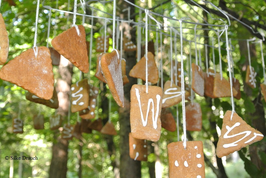• Lebkuchen backen, diese auf Kleiderhaken hängen, so können diese am Tag der Wanderung rasch rund um das Hexenhaus auf Äste gehängt werden!
