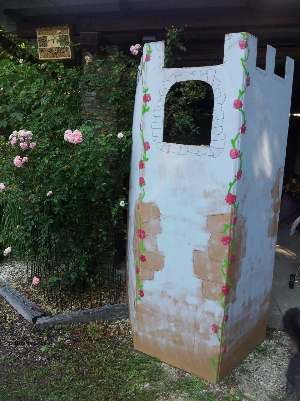 • Rapunzel Turm aus Karton basteln, Zopf aus Hanf basteln