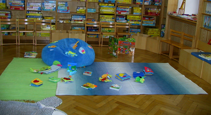 - Der größere Raum ist bei uns der Vorlese- und Spieleraum, der kleinere Raum ist der Jausenraum.