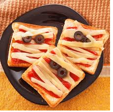 - 5. Mitternachtsjause: Während der Jause kann das Ende der Geschichte in Ausschnitten weiter vorgelesen werden, damit die Kinder wissen, wie das Abenteuer ausgeht. Es gibt Mumientoasts (siehe mumientoast.jpg), die die Kinder selbst belegen können.