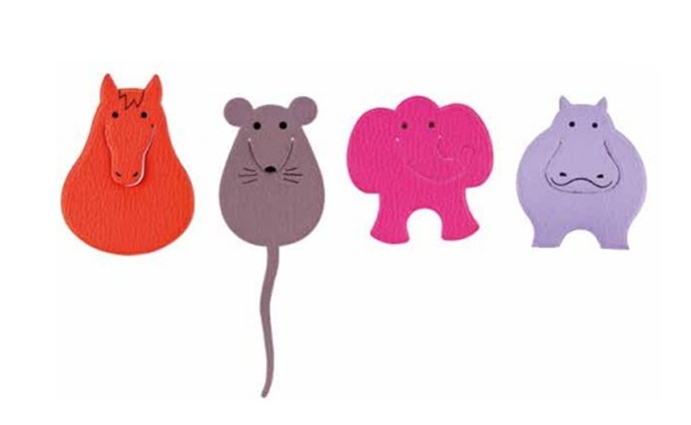 Dann werden aus Lederstücken, die wir als Reste von Möbelhäusern geschenkt bekommen haben, anhand von Vorlagen lustige Tierlesezeichen gebastelt.