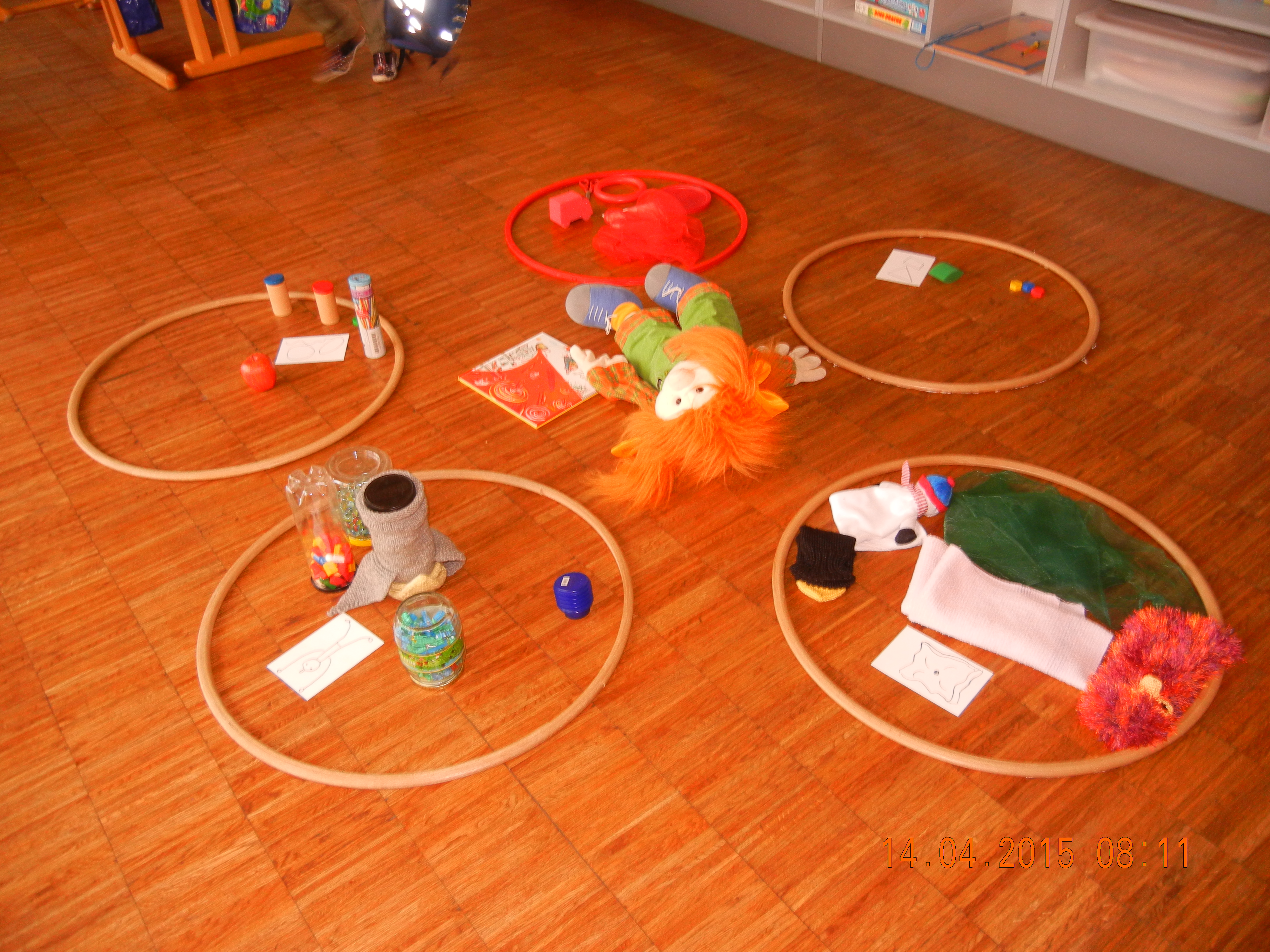 • Legematerialien wie zum Beispiel Bauklötze, Tücher, Schulsachen(Stifte, Federpennal, Hefte, u.s.w.), Murmeln, Dosen, Fingerpuppen und mehr